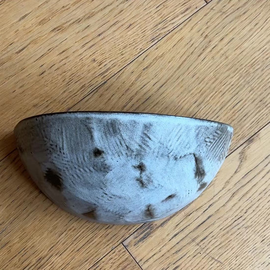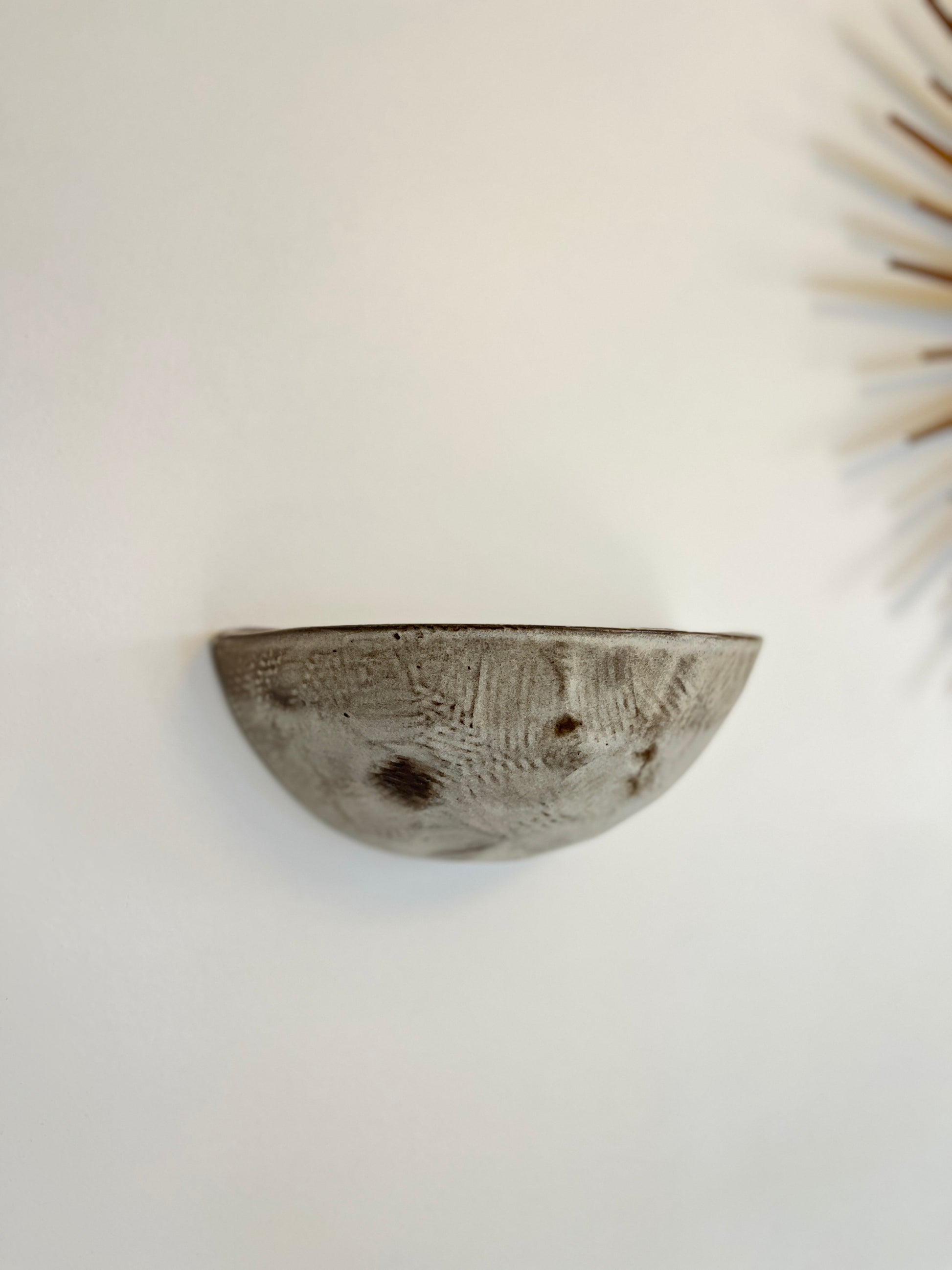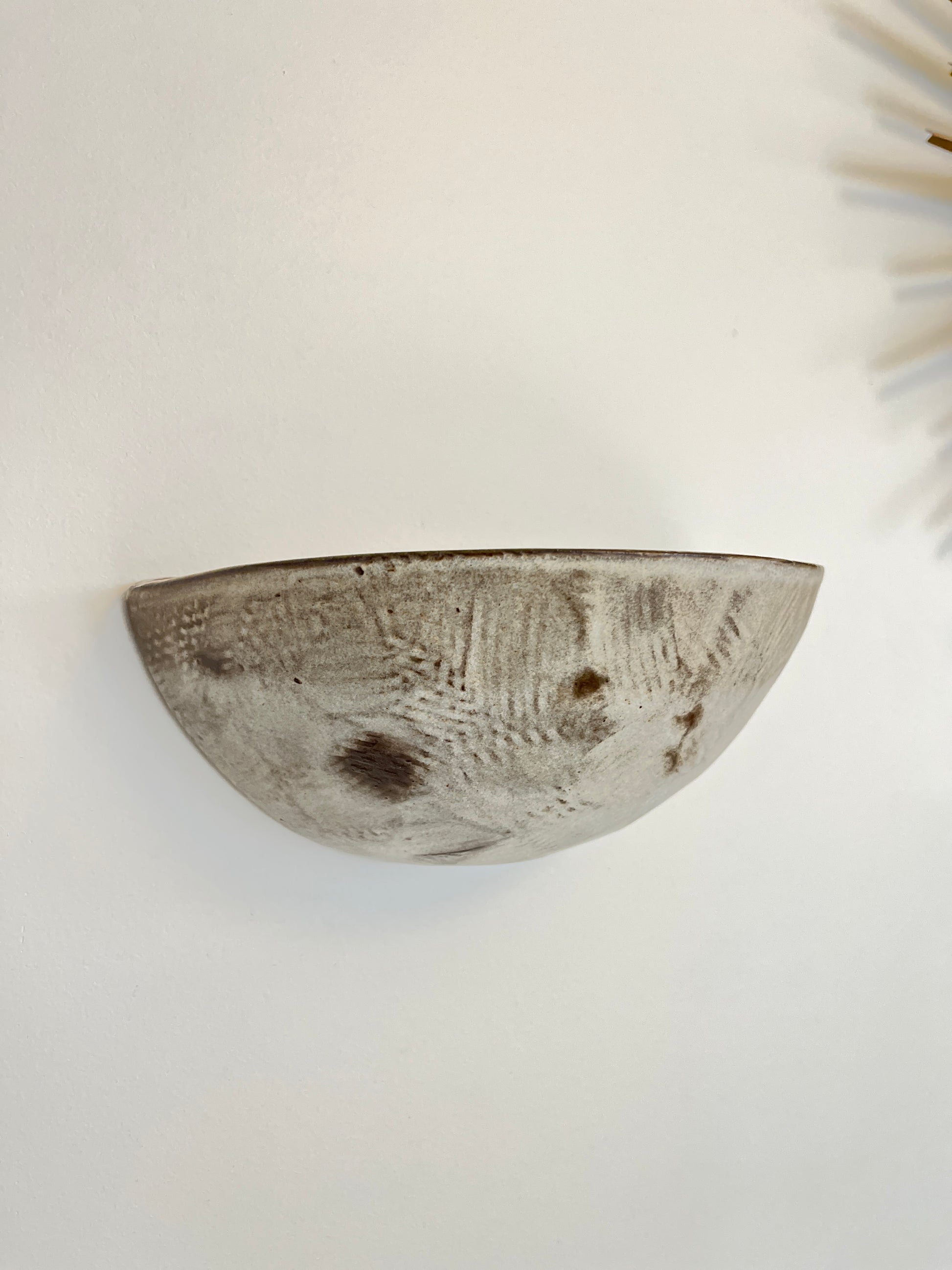 Applique murale terre chamottee noire émaillée en blanc mat - effet organique texturé - le temps