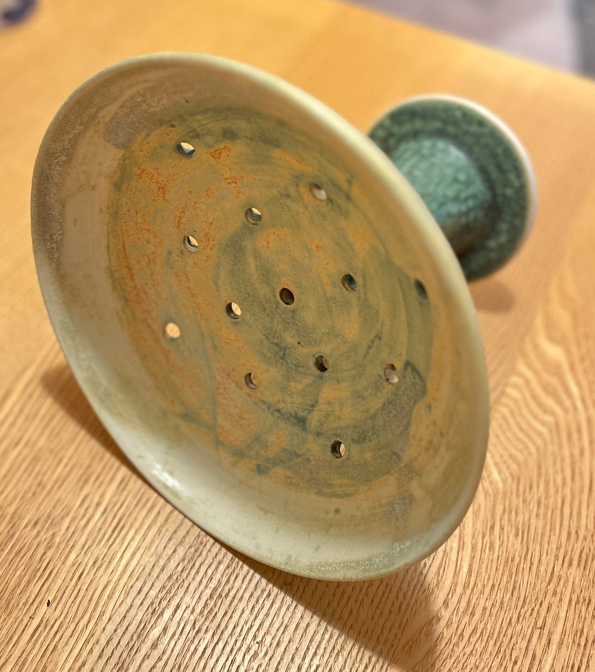 La Forme de sa coupe est élégante et intemporelle. Par ailleurs je l'ai conçue percée permettant d'aérer les fruits et les faire perdurer plus longtemps. Vous pouvez également les y laver.
