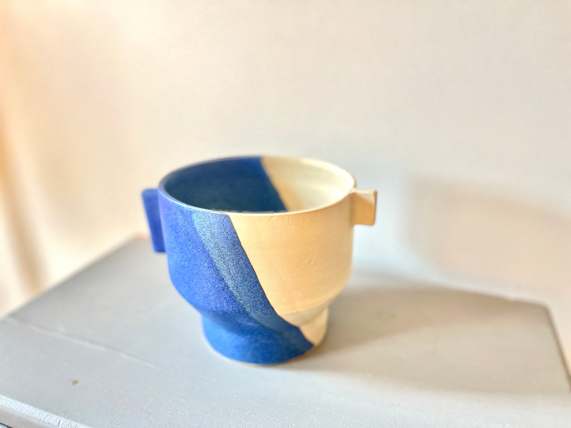 Le pot est tourné puis j'ai ajouté deux éléments de décoration colles sur les côtés du pot lui donnant une forme géométrique asymétrique.